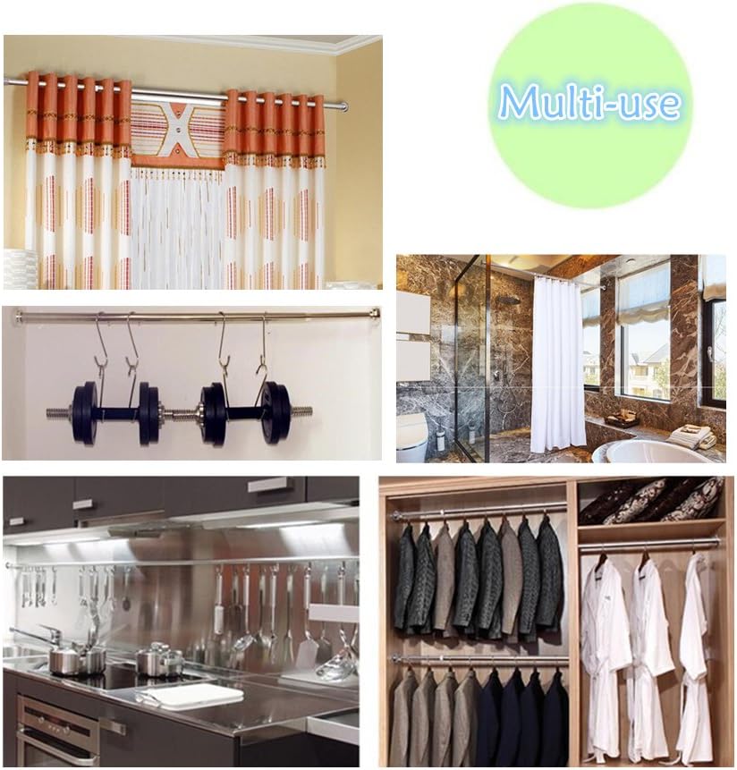 • Quick and Easy to Fit --- No drill shower curtain rod, it can be extended to any length you need from 155 to 260cm. Extend,twist and lock, stay firmly. Perfect for bathroom, closet, wardrobe, door, window, etc.