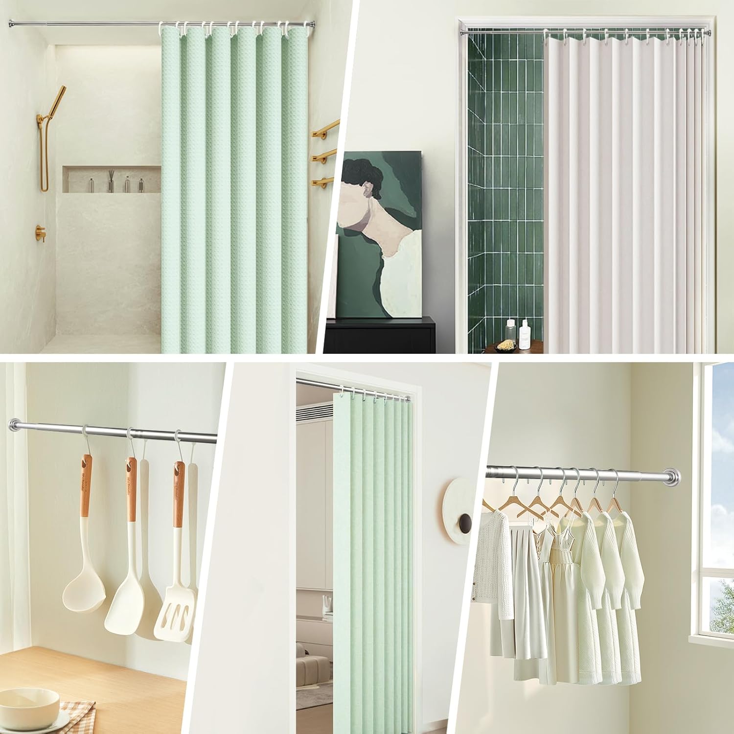 • ☑ Suitable for Versatile Use Purposes — This adjustable tension rod meets various use purposes in bathrooms, bedrooms, living rooms, kitchens, balconies, walk-in closets, dining rooms. Not only as a shower curtain rod, but also as a door or window curtain rod, wardrobe rod, hanging rod, clothes rail, etc.